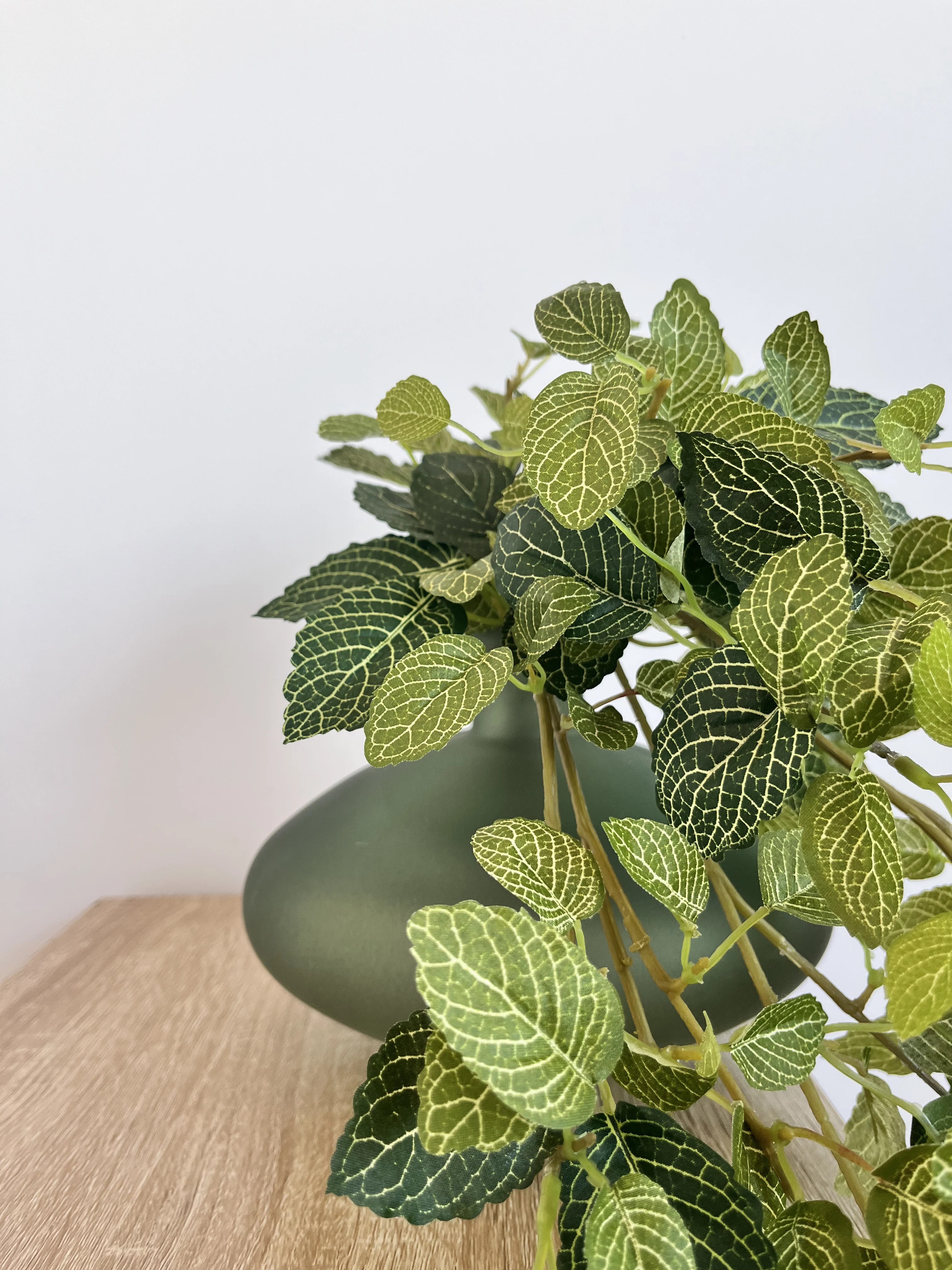 La Fitonia artificiel mini enchante vos décorations d'un feuillage panaché en tergal, sur 8 braches et piquetée pour une installation simplissime.