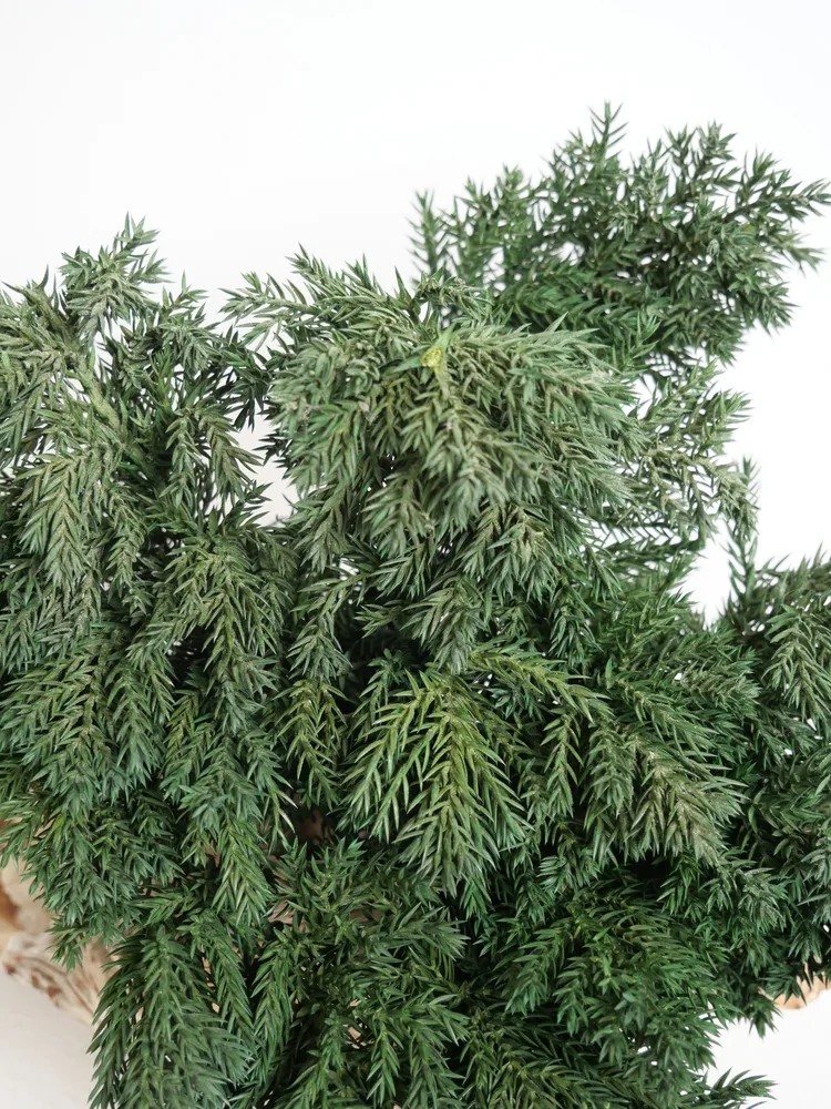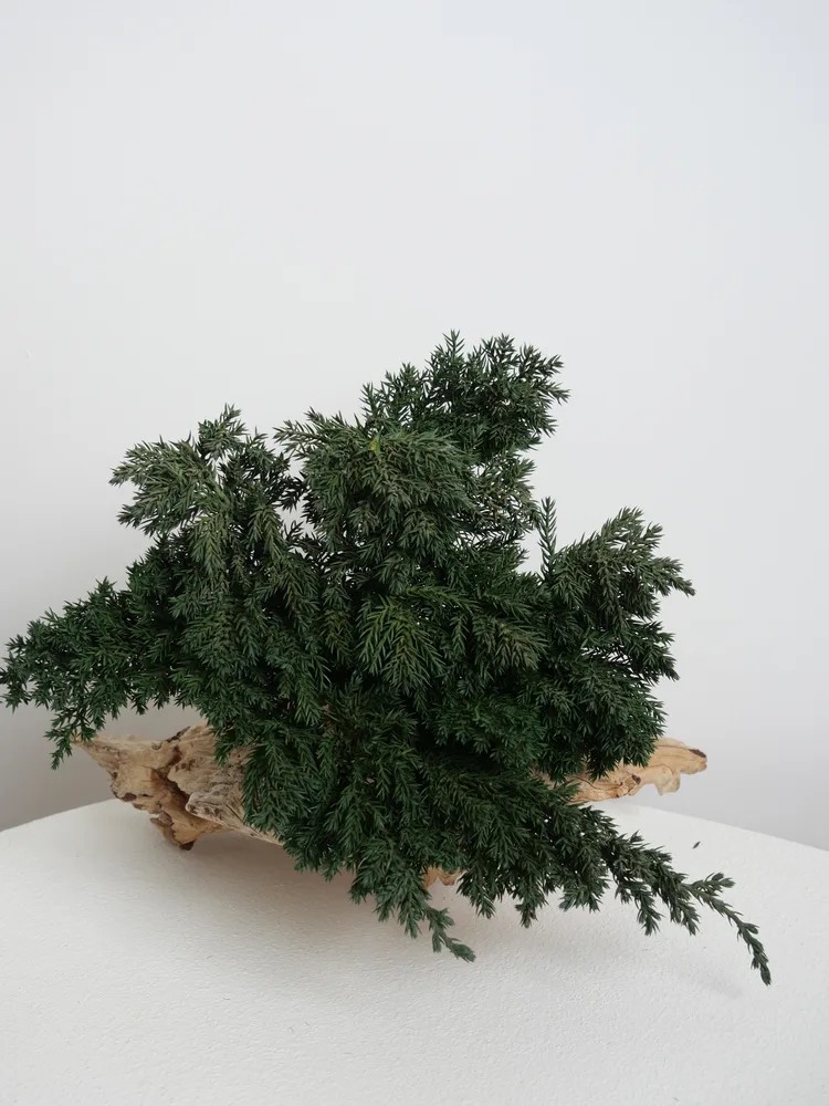 Issu d’un procédé de stabilisation écologique, le juniperus est une plante 100% naturelle dont la sève a été remplacée par une solution à base de glycérine végétale et de sucre. Ce traitement conserve durablement l’éclat et la souplesse de son feuillage, sans nécessiter d’arrosage, de lumière ou d’entretien, tout en préservant son aspect authentique au fil des années.
