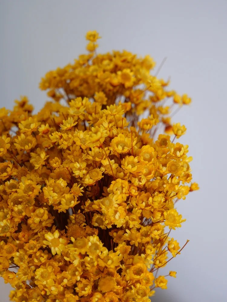 La Glixia stabilisée est une fleur fine et délicate, composée de petites têtes étoilées portées par de longues tiges élancées. Son charme discret et sa palette de couleurs éclatantes — blanc, jaune, rose, orange, vert, bleu et rouge — en font un incontournable des compositions végétales aériennes et poétiques. Parfaite pour les murs végétaux comme pour les tableaux, elle apporte une touche légère, colorée et joyeuse.