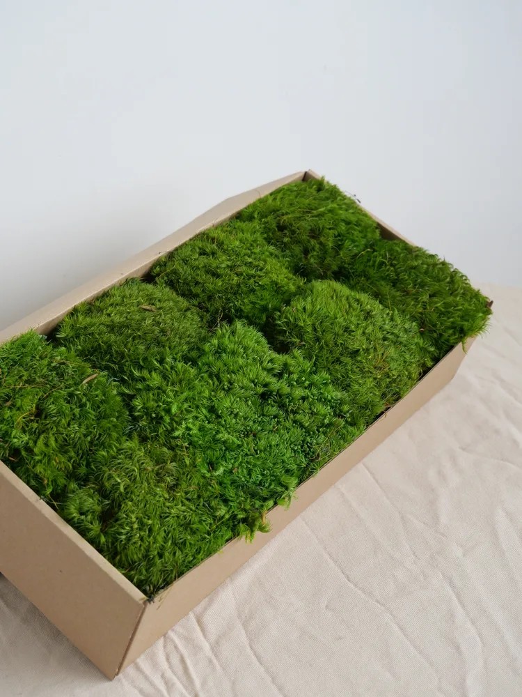 La mousse boule stabilisée séduit par son aspect naturellement bombé et sa texture douce, qui apportent volume et douceur aux créations végétales. Grâce à ses nuances variées de vert foncé, vert clair et vert citron, elle évoque un sous-bois luxuriant et vivant. Parfaite pour enrichir un mur ou un tableau végétal, elle permet de structurer une composition avec relief tout en conservant une harmonie naturelle.