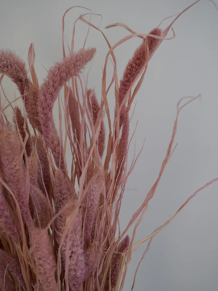 La Setaria est un feuillage séché souple et élégant, reconnaissable à ses inflorescences duveteuses en forme de petites queues cylindriques. Dans ses teintes délicates de rose, beige et vert, elle apporte une touche douce, champêtre et légèrement vintage aux compositions végétales. Sa hauteur de 75cm en fait un élément de choix pour structurer des murs et tableaux végétaux avec légèreté et harmonie.