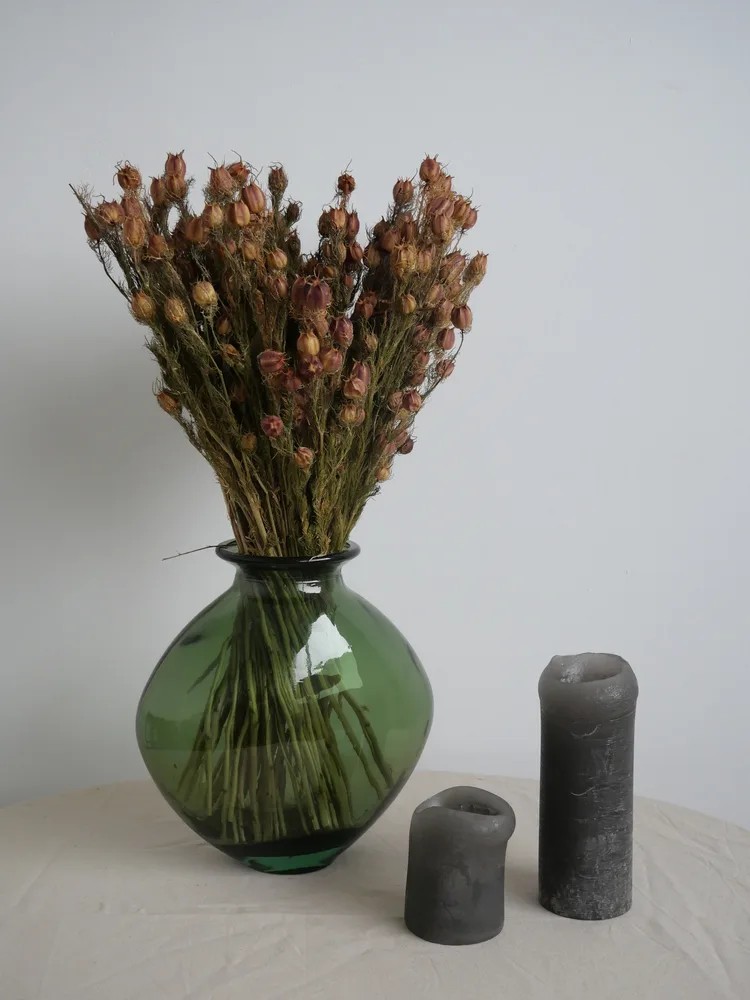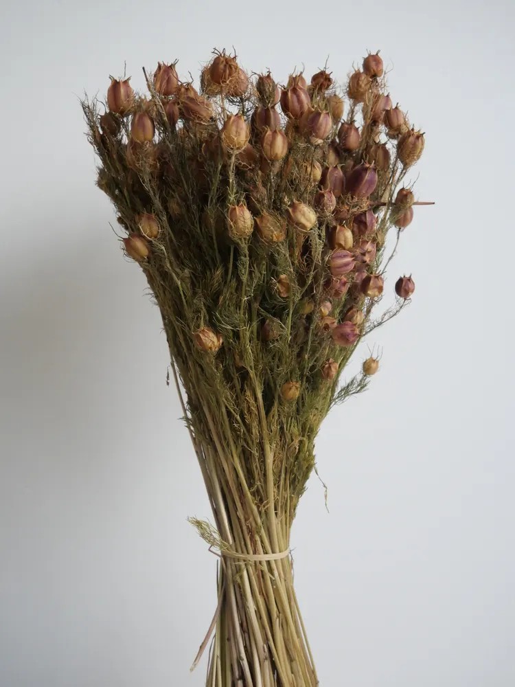 Le nigelle séché est une plante robuste et graphique, reconnue pour ses grandes inflorescences épaisses et structurées qui apportent une présence forte et contemporaine aux compositions végétales. Son feuillage confère une touche naturelle et élégante, idéale pour créer des murs ou tableaux végétaux au style moderne et épuré.
